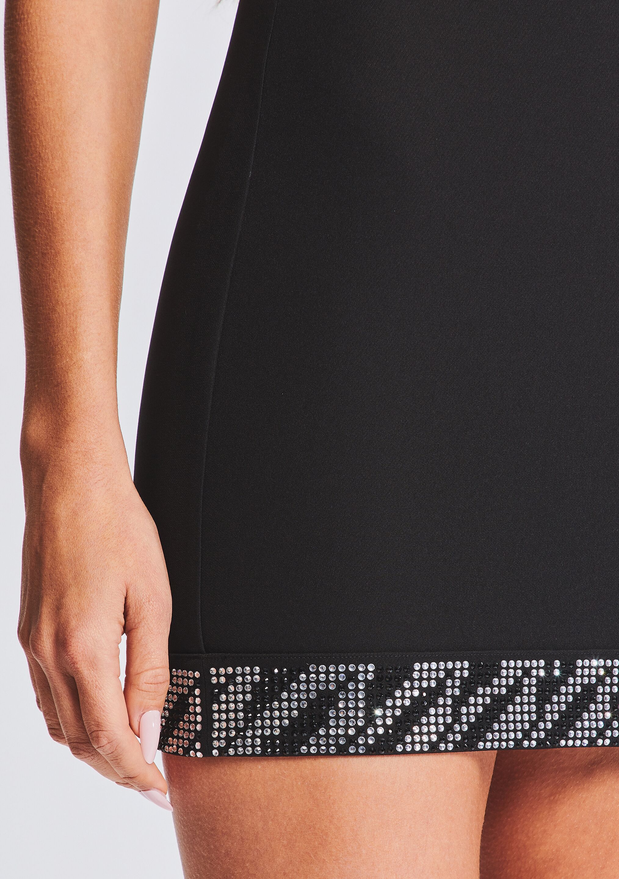 Be the center of attention in our Abigail Dress. Featuring a flattering body con silhouette and adorned with a sequin embellished hem, this dress is a celebration of style and glamour, designed for those who want to make a statement at every soirée. Shown here in Black/Silver.