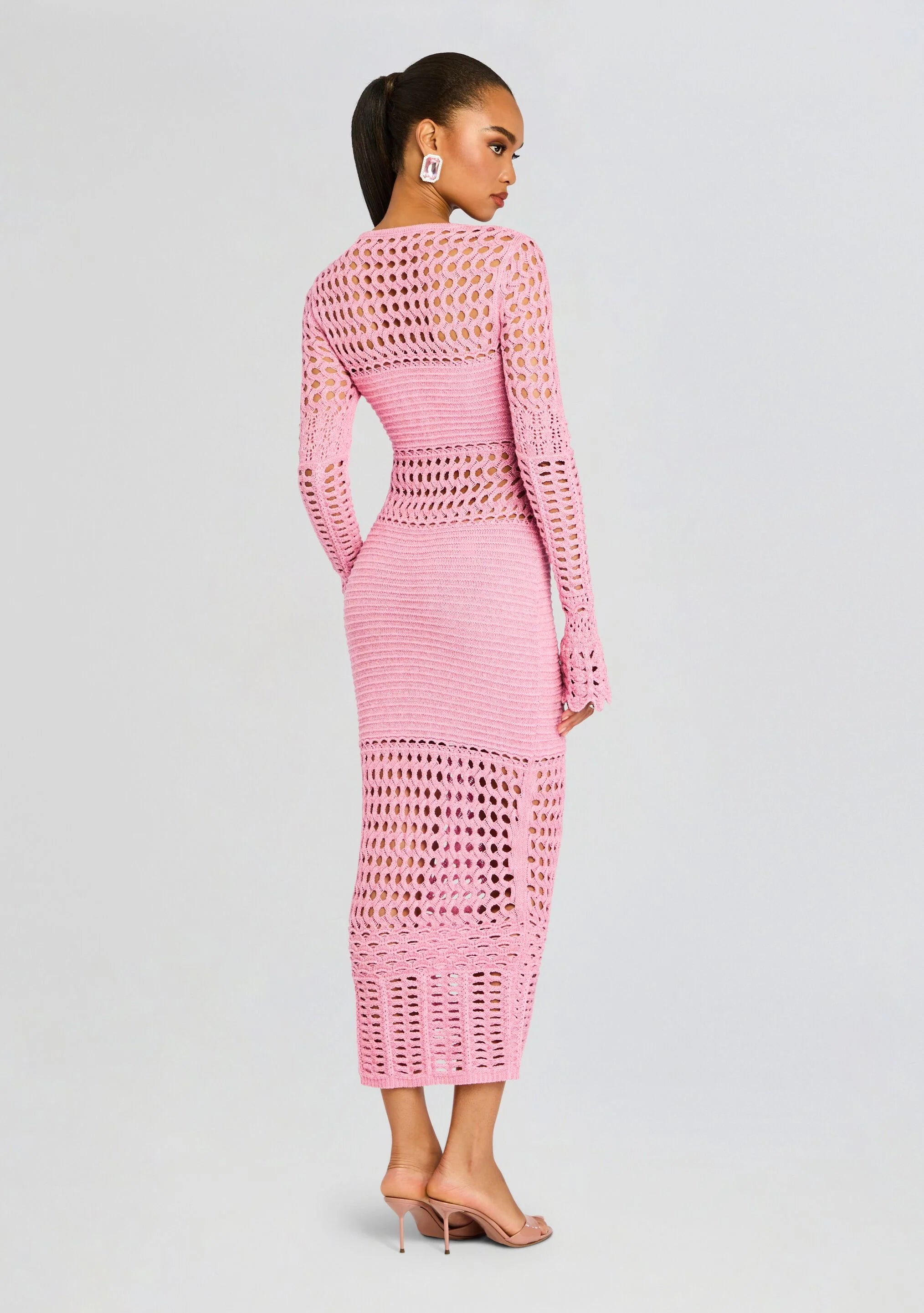 Indulge in the luxury of our Airie Knit Crochet Dress. Crafted with meticulous crotchet detailing and a flattering scoop neck, this dress is perfect for your next vacation. The long sleeves provide comfort and elegance, making it a versatile piece for any occasion.