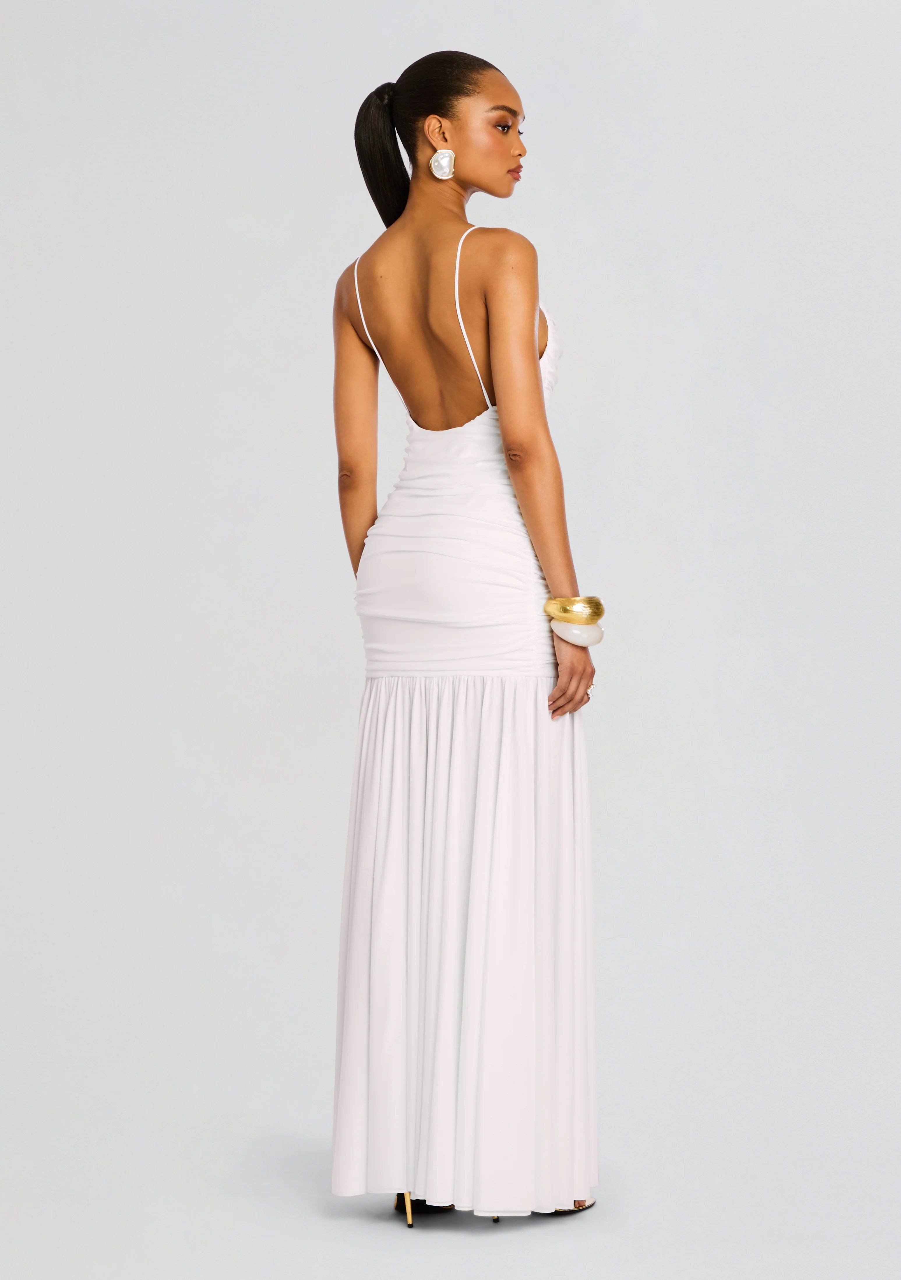 Introducing the Bristol Mesh Dress - a vacation essential designed to elevate your style. Crafted with delicate mesh fabric and featuring a tasteful cutout, this dress adds a touch of luxury to your wardrobe. Perfect for any getaway or summer event. Shown here in Porcelain.